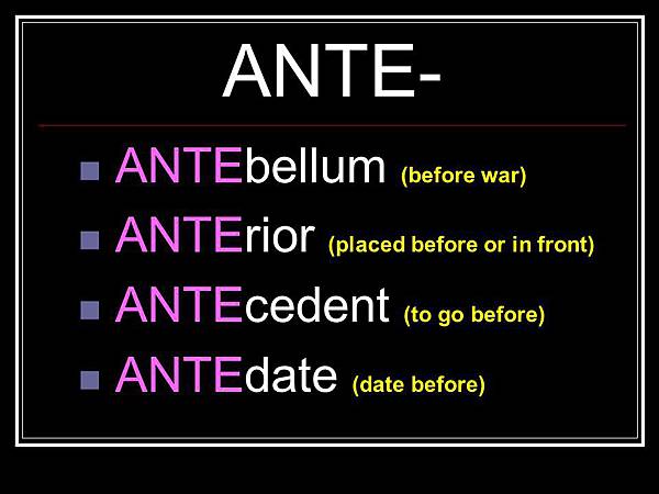 在介紹前請先回答一個問題,看到ante- 直覺反應是before (先前)還是against (反對)?